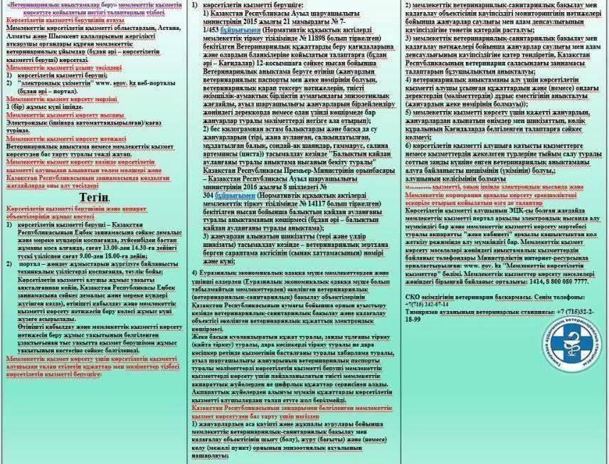 Мемлекеттік қызмет көрсетуге қойылатын негізгі талаптардың тізбесі «Ветеринариялық анықтама беру»