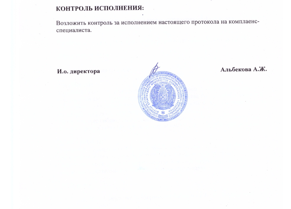 Осы хаттаманың орындалуын бақылау комплаенс-маманға жүктелсін.
