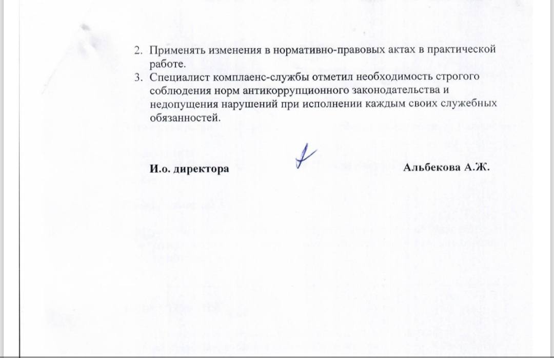 3. Строго соблюдать нормы антикорупционного законодательства Республики Казахстан при исполнении каждым своих служебных обязанностей.