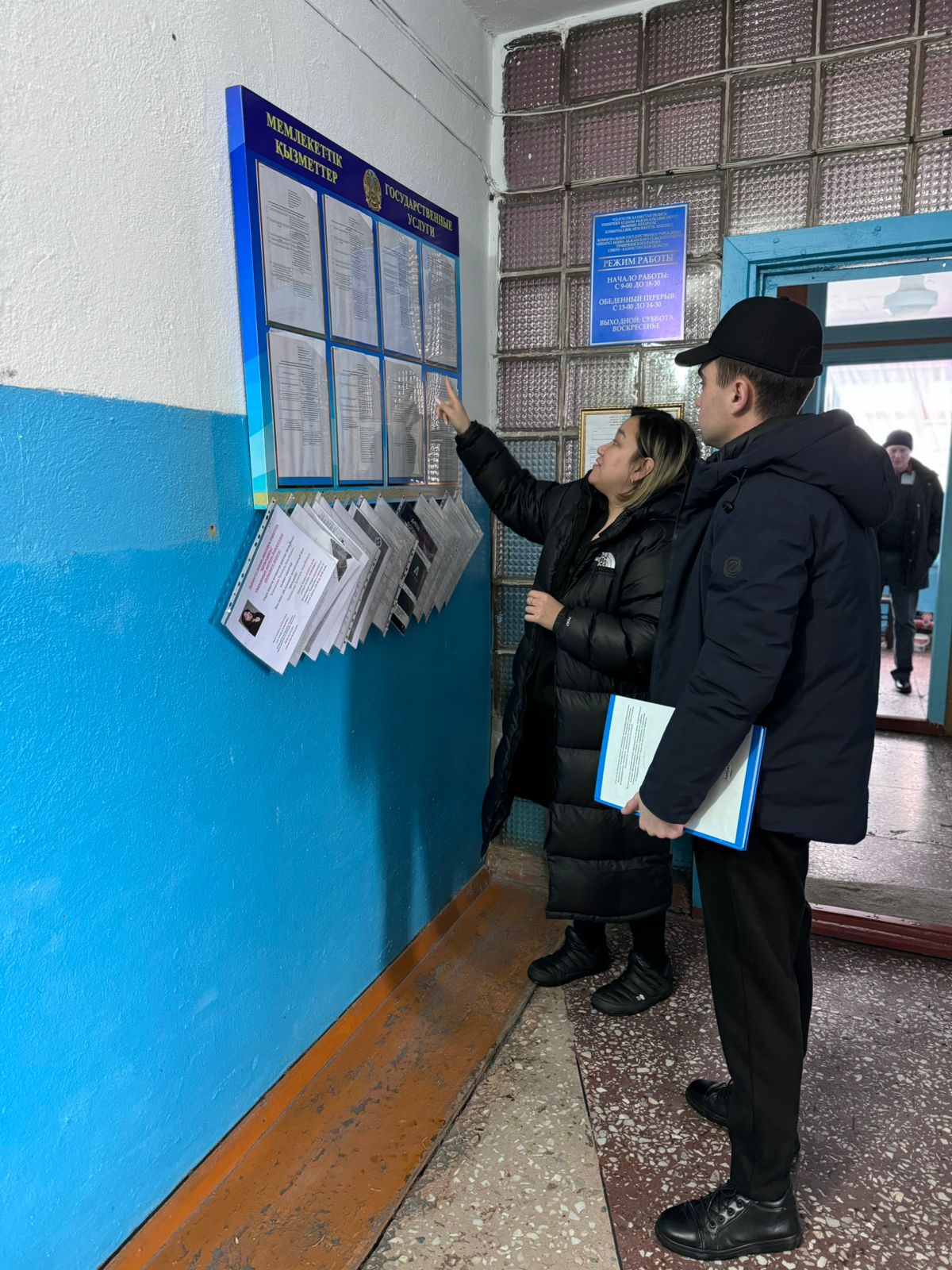 По итогам выездов с ответственными лицами, оказывающими государственные услуги проведена информационно-разъяснительная работа по качественному и строгому соблюдению порядка оказания государственных услуг а также проведен инструктаж по недопущению фактов совершения коррупционных правонарушений.