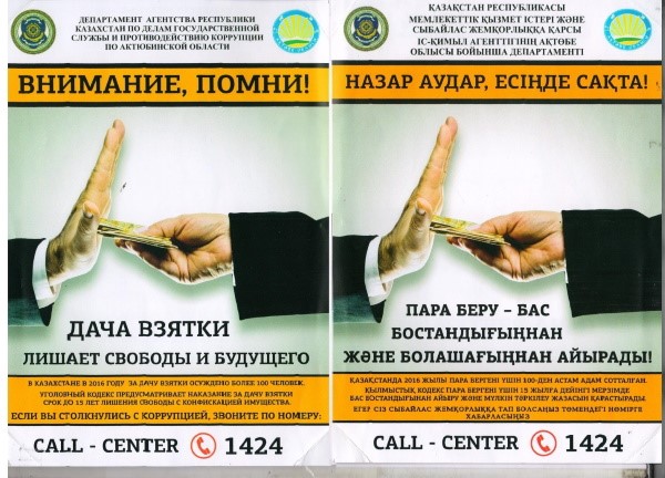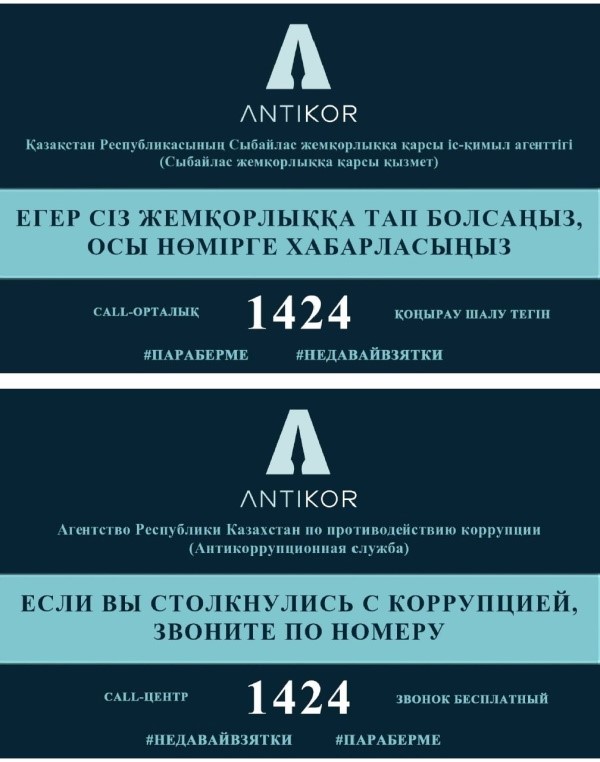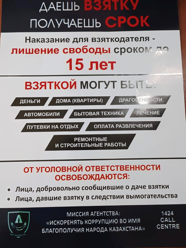 Если Вы столкнулись с коррупционными проявлениями при получении государственных услуг, то Вам необходимо обратиться по единому номеру CALL – ЦЕНТР ANTIKOR 1424 Агенства Республики Казахстан по противодействию коррупции.